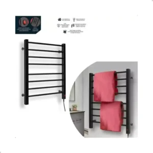 Toalheiro térmico elétrico aço carbono para 2 toalhas preto
